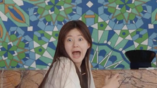 和其他女嘉宾的安静相反,金靖是这一季最闹腾的女嘉宾,她还没登场,蔡徐坤看到她就先跑了。