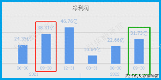 2021年第三季度,该企业的净利润高达38.31亿元。到了2022年第三季度,公司的业绩就降至31.73亿元,同比下降了17%。