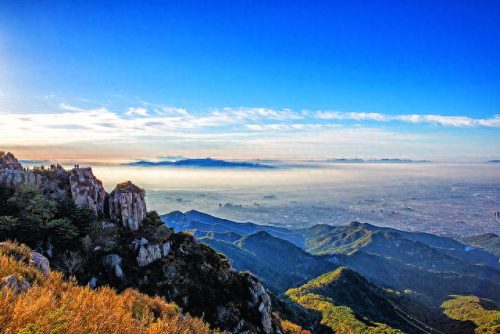 1.山东泰山:有“五岳之首”“天下第一山”之称,具有极其美丽壮观的自然风景,巍峨,雄奇,沉浑,峻秀的自然景观常令世人慨叹,更有数不清的名胜古迹,摩崖碑碣,是世界上少有的历史文化与自然相结合的游览胜地。
