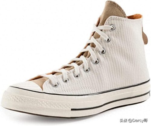 Converse 匡威 男士 Chuck 70 Hi Hickory 条纹运动鞋沙漠沙/白鹭/白鹭。 高筒鞋由约 50% 再生帆布制成。 条纹印花从普通鞋舌中脱颖而出。 脚踝处采用 100% 再生聚酯制成的星星补丁和由 100% 再生涤纶制成的鞋跟环,为传统材料增添了一抹新的触感。 漆白色中底打造经典外观 OrthoLite 鞋垫,增加舒适度。
