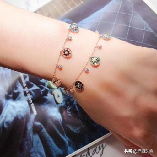迪奥这个品牌就不用多介绍了吧,它家的罗盘手链,也是社交平台经常看到的款式。戴上迪奥罗盘为您指引幸运方向,材质是:️18k金镶嵌天然白贝、粉奥宝、黑玛瑙、孔雀石、绿松石。不喜欢太复杂的5罗盘手链,选择单个罗盘的也很好看。